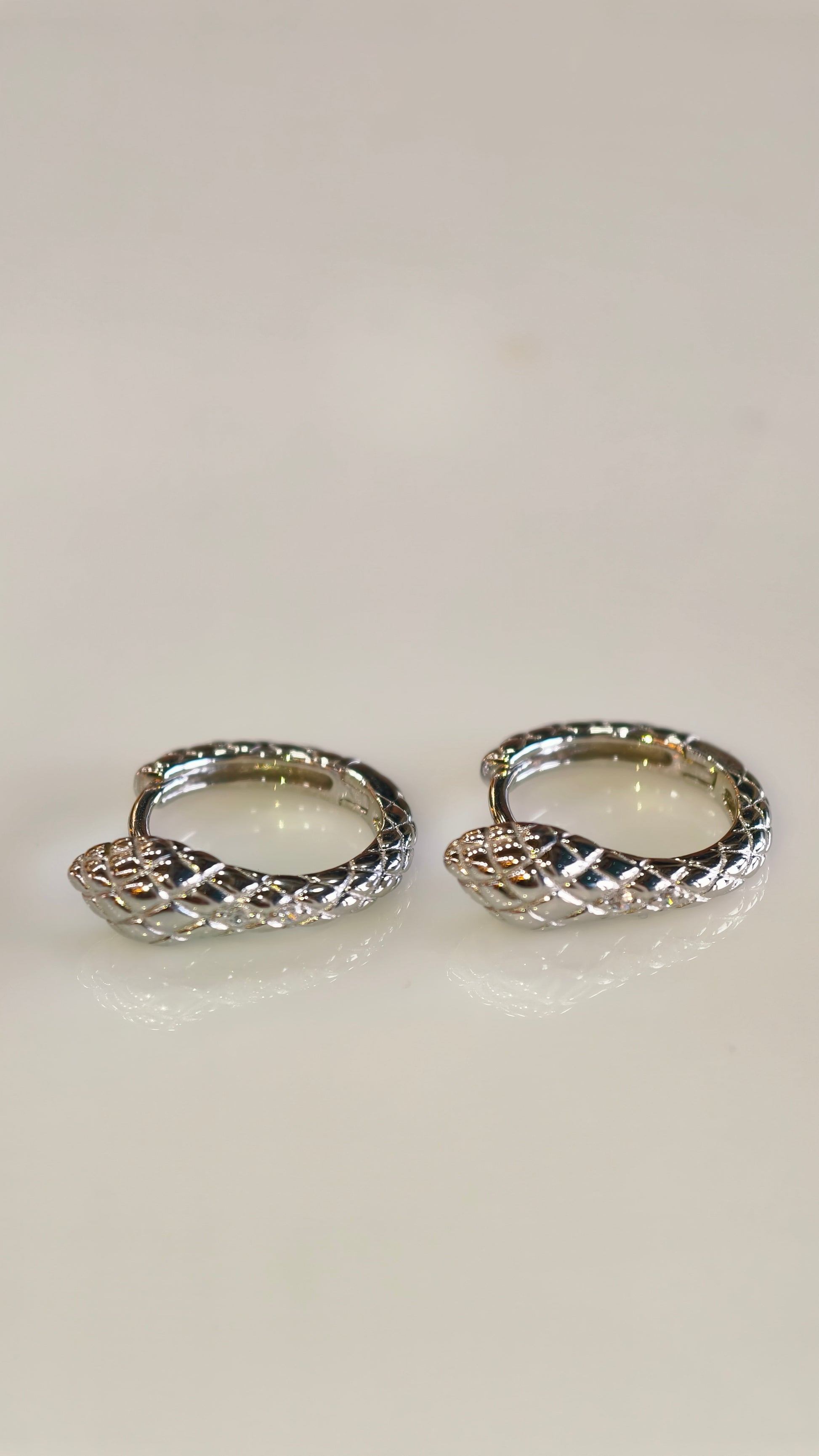 Channel a sense of mystery and strength with our Serpentine Huggies. These mini-hoops feature a striking, highly detailed scale-etched texture that mimics the graceful skin of a serpent. Crafted in a high-shine silver-tone finish, the hoops taper into a subtle, sculpted snake-head silhouette, offering a bold yet sophisticated edge to your ear stack.
